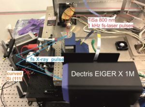 Typical trXRD experiments are carried out in a pump-probe mode. This method, suitable for studying quantitatively reproducible dynamics, relies on creating a time-delayed sequence of two short pulses: a “pump” pulse excites the matter from the balance and a “probe” pulse of X-rays is used to create or take ‘snapshots’ of the matter structure at a particular time during a dynamical response of the matter. It is then possible to trace out the structural response of a system as a function of time by repeatedly applying these two pulses to the matter with different relative delays.